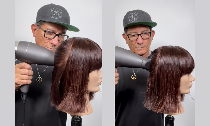 “Wrap drying allows hair to fall with a natural bevel to it, much more so than using a round brush that creates a stronger bevel with more volume,” adds Villa.