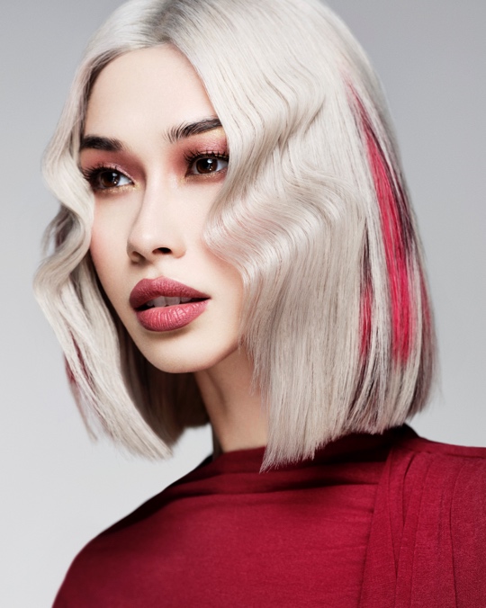 For Brian, Cloud Dancer also provides a soft, luminous foundation that can act as a versatile starting point. Rather than standing alone, it can be combined beautifully with other tones to add subtle depth and movement. In this interpretation, it is layered with muted reds and rich burgundies, carefully placed to create hidden warmth that reveals itself as the hair catches the light. These complementary tones enrich the base shade, giving it dimension and personality without overpowering its understated quality. The overall effect is a multi-layered colour story that feels fresh, refined, and modern, a shade that can be very striking when thoughtfully paired with others.