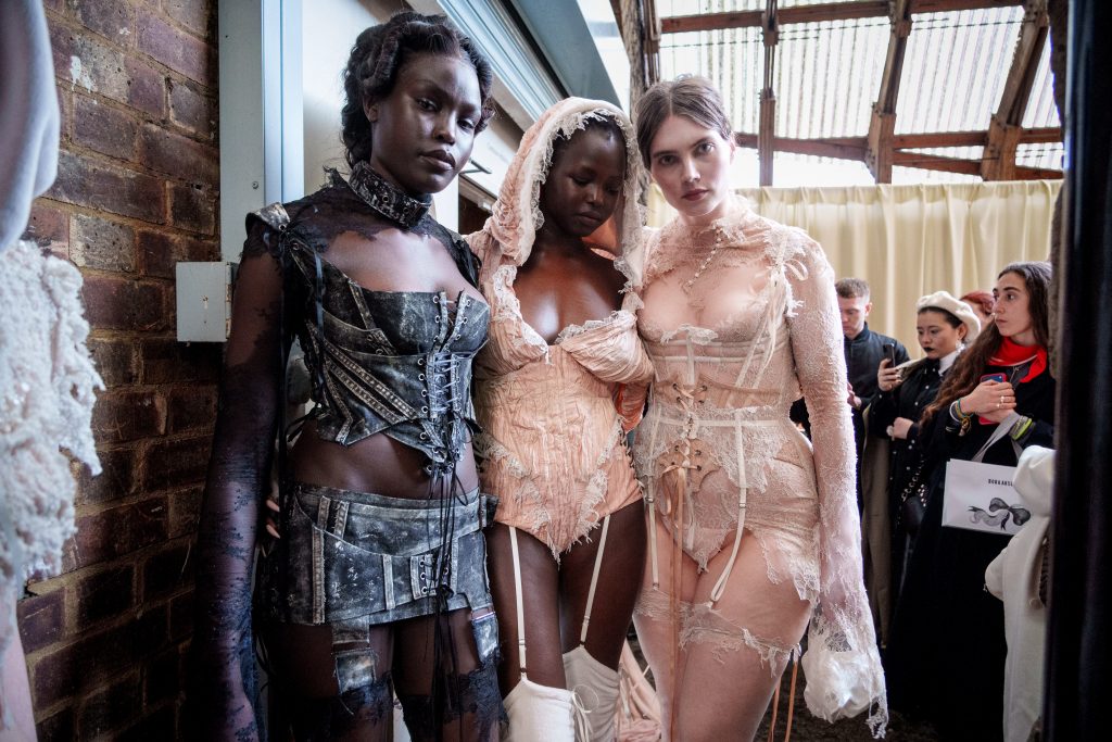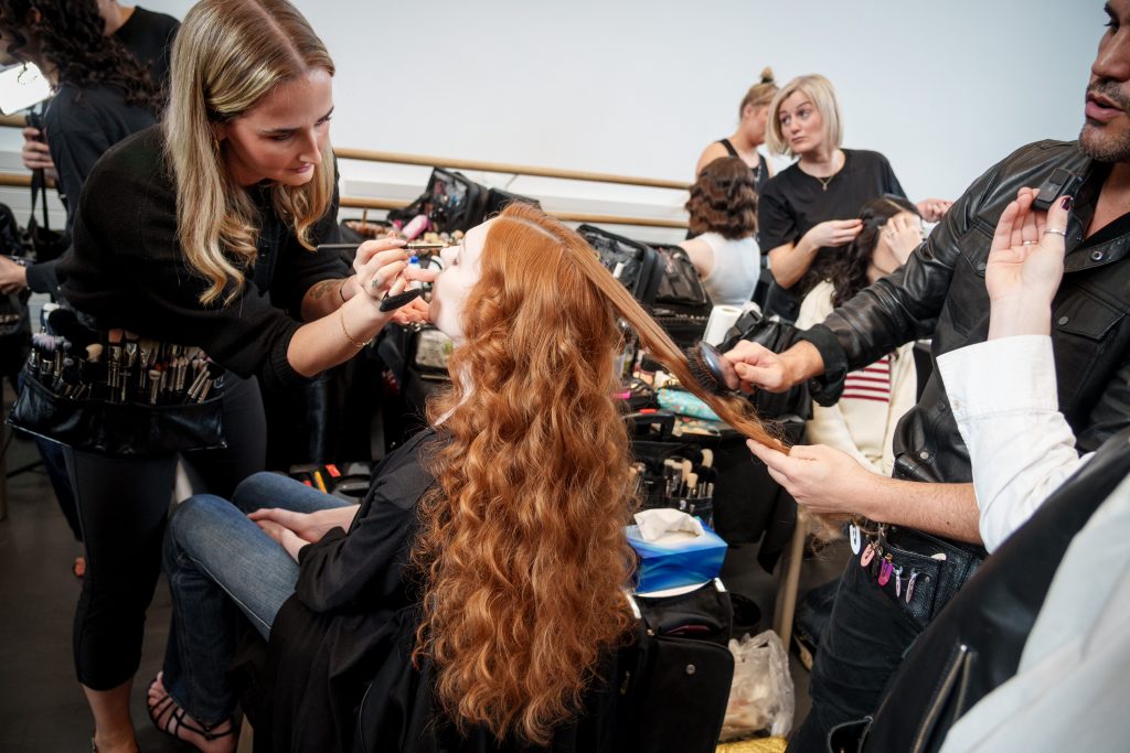 Danilo Giangreco, Artistic Ambassador for Revlon Professional UK & Ireland, led the backstage hair team at Patrick McDowell. Drawing inspiration from the work of American photographer George Platt Lynes, the look was soft and feminine, featuring defined curls and deep side partings that followed each model’s natural hair movement. Revlon Professional Style Masters Amplifier Mousse was used to set the curls, enhancing soft, lived-in texture with a touch of natural frizz for a finish that felt polished yet deliberately effortless.