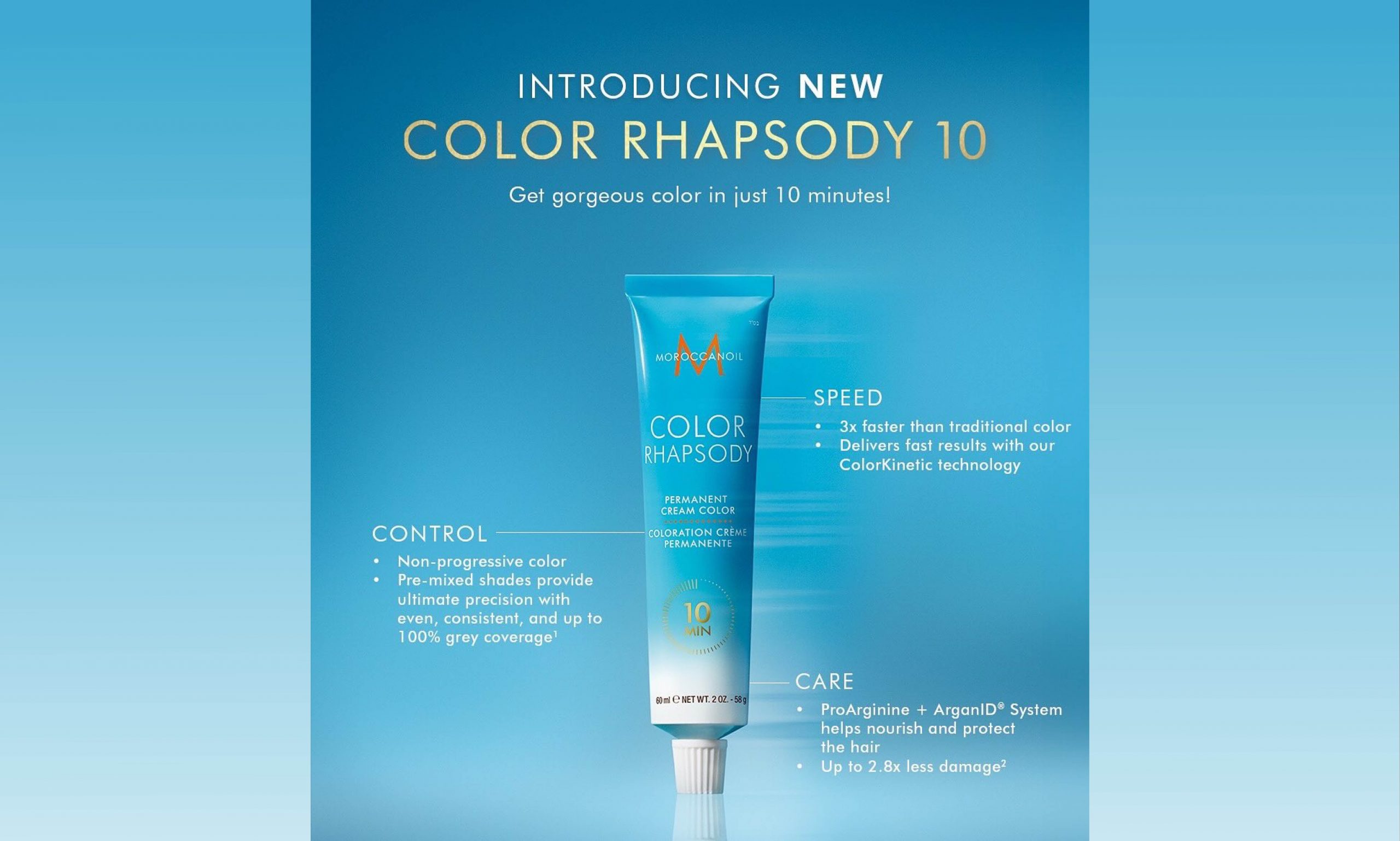 Moroccanoil Color Rhapsody 10 delivers true-to-tone color, radiant shine, and complete grey coverage for clients with up to 60% white hair in just 10 minutes. The proprietary self-timing ColorKinetic Booster accelerates color processing then precisely halts it, providing control for colorists and beautiful, long-lasting results for clients. Experience the color you know and love, while optimizing valuable time. Available in 16 pre-mixed shades that can be used individually or intermixed for customized results at participating Moroccanoil Salons.